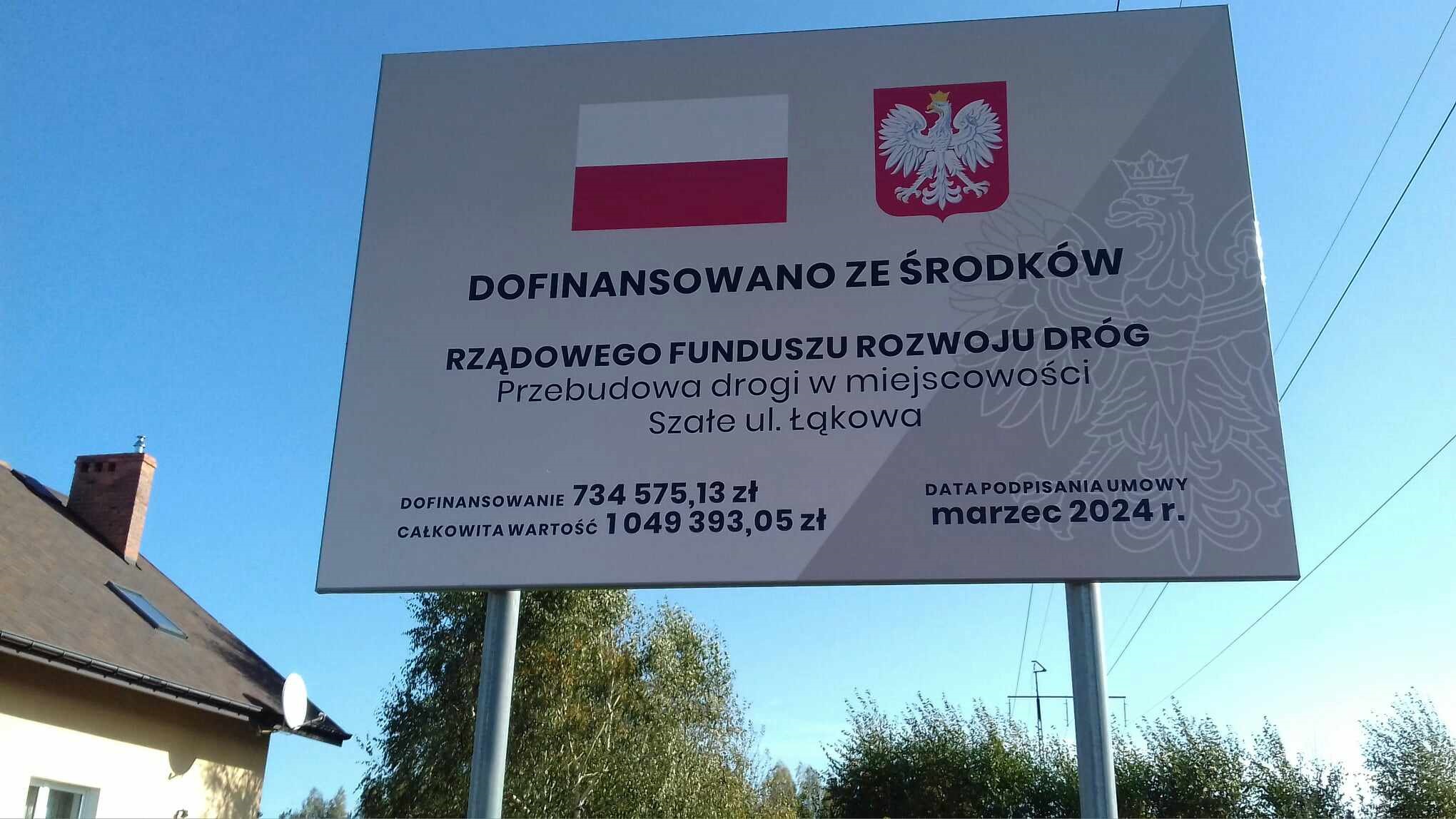 Wartość zadania 1 049 393,05 zł z czego dofinansowanie w ramach Rządowego Funduszu Rozwoju Dróg 734 575,13 zł.