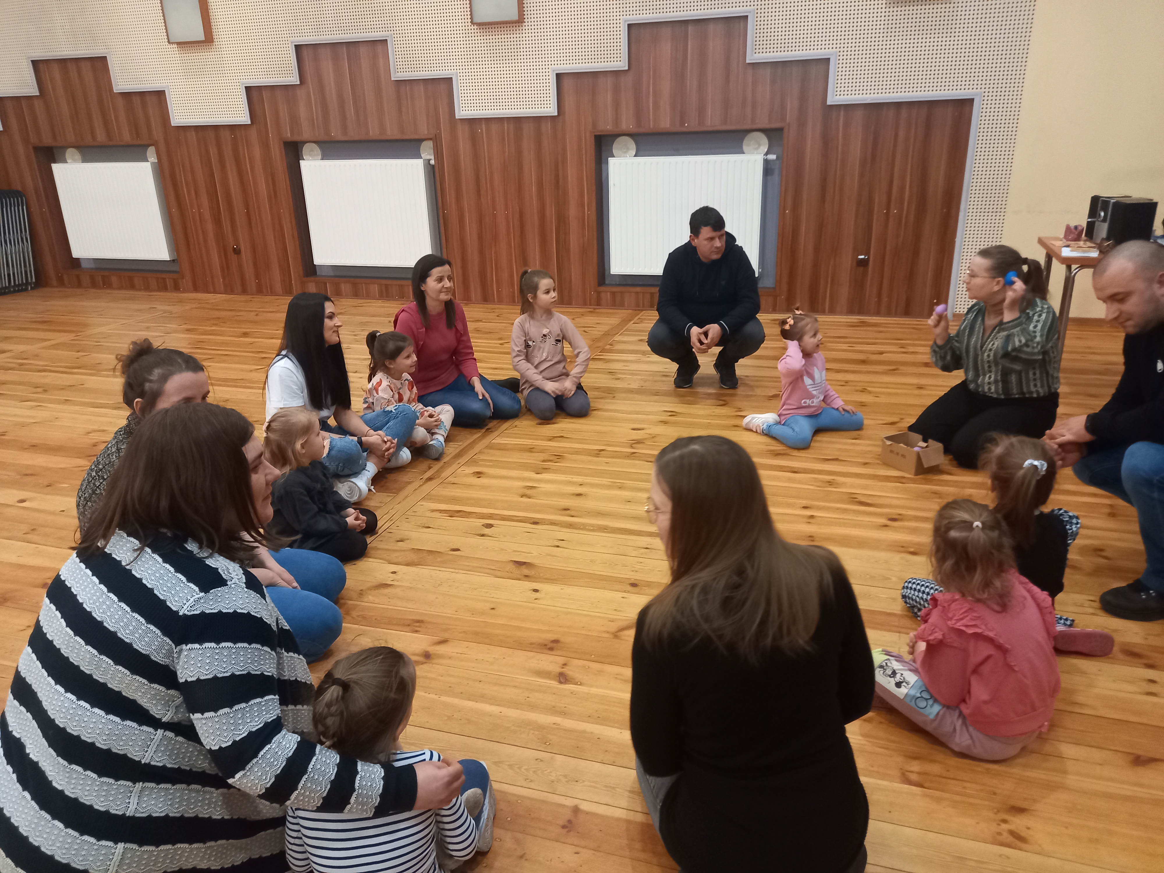 -grupa III rocznik 2020 , w której udział w zajęciach wraz ze swoimi dziećmi biorą rodzice. Zajęcia prowadzi pani Ewa Andrzejewska , która poprzez zabawę uczy najmłodszych koncentracji, oraz pamięci jak również zachęca do aktywności ruchowej poprzez ćwiczenia fizyczne w połączeniu z bodźcami dźwiękowymi.