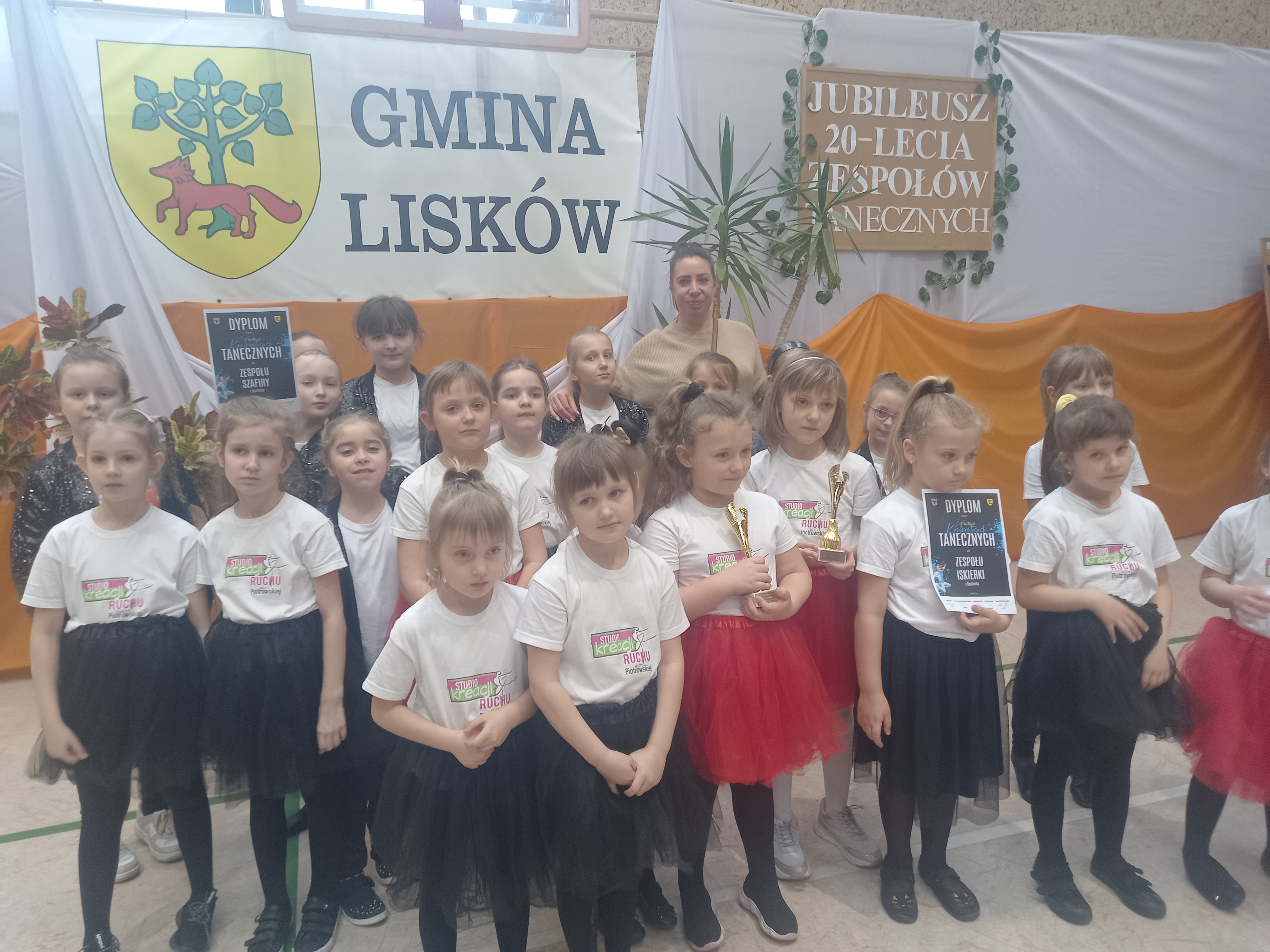 Grupa młodsza ISKIERKI w wieku 6-7 lat i grupa starsza SZAFIRY w wieku 8-12 lat. Łącznie w obydwu grupach swój talent szlifuje ponad 40 dziewczynek. Instruktorem jest pani Paulina Ostrowicz ze Studia Ruchu Arlety Piotrowskiej w Kaliszu. Dziewczynki mają za sobą udział w przeglądach tanecznych w Liskowie jak również występy na imprezach plenerowych organizowanych przez Gminny Ośrodek Kultury m.in. Dzień Dziecka , Majówka z GOKiem..jpg)